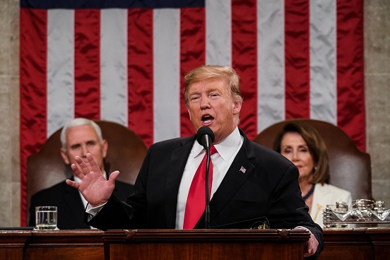 Remarcó que el presidente ha endeudado al país por tres mil millones de dólares al recortar los impuestos a quienes más poseen, criticando que el mandatario afirmó que el tratado con México y Canadá se lo atribuyera cuando se trató de un esfuerzo principalmente demócrata.