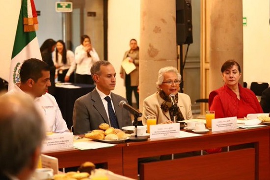 La titular de Gobernación, Olga Sánchez Cordero, encabezó la reunión acompañada por el subsecretario de Gobierno, Ricardo Peralta Saucedo, y el subsecretario de la Secretaría de Salud, Hugo López-Gatell Ramírez.