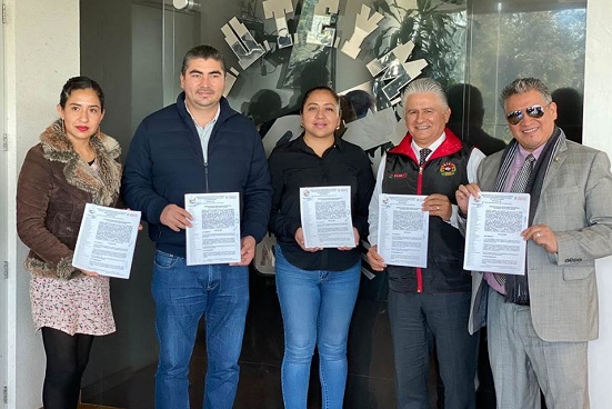 Herminio Cahue Calderón, Secretario General del Sindicato Único de Trabajadores de los Poderes, Municipios e Instituciones Descentralizadas del Estado de México (SUTEYM), y Leonel González Talavera, Presidente Municipal Constitucional de Rayón, firmaron el convenio de sueldo y prestaciones 2020, que significó un incremento del 6 por ciento para los agremiados.