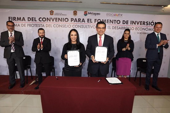 La alcaldesa Gaby Gamboa Sánchez y el Secretario de Desarrollo Económico del Estado de México, Enrique Jacob Rocha, firmaron el Convenio de Colaboración para el Fomento de la Inversión en Metepec, con el cual se fortalece el trabajo coordinado para desarrollar y ejecutar políticas públicas y programas orientados a generar derrama económica a través de la regulación de la actividad comercial, facilitar la apertura de nuevos negocios e incentivar el atractivo turístico.