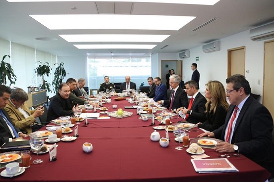 Los secretarios de Seguridad y Protección Ciudadana, Dr. Alfonso Durazo Montaño, de la Defensa Nacional, General Luis Cresencio Sandoval González, y el Consejero Jurídico de la Presidencia de la República, Julio Scherer Ibarra, se reunieron con los gobernadores de los estados de México, Colima, Coahuila, Guerrero, Hidalgo, Oaxaca, Sonora y Tlaxcala para fortalecer el trabajo de las instituciones estatales y federales, en el ámbito de la seguridad.