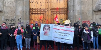Feministas protestan en Palacio Nacional, AMLO respalda manifestación