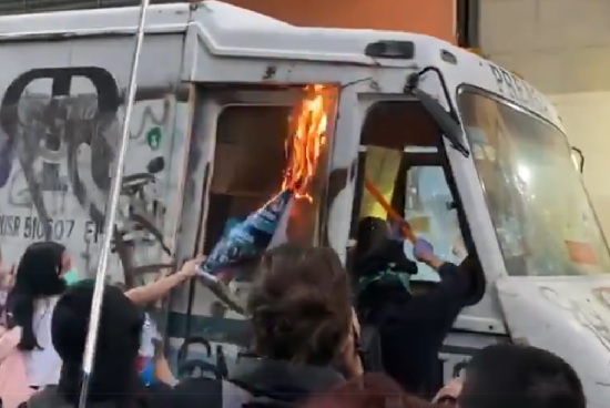 Luego de que las mujeres lanzaran bombas de humo, las oficiales respondieron con gas pimienta en varias ocasiones.