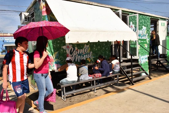 En compañía del alcalde José Carlos Acosta Ruiz, la Secretaria de Inclusión y Bienestar Social explicó que a través de la Dirección de Comedores Sociales, se impulsan los comedores comunitarios y públicos. Los comemóviles, resaltó, forman parte de estos últimos.