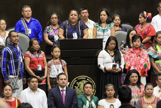 Un grupo de indígenas, entre ellos legisladores, tomaron por unos minutos la tribuna de la Cámara de Diputados para arropar a la activista Martha Sánchez Néstor, en el último discurso del ciclo de participación de los hablantes de lengua originaria, en donde llamó a acabar con la discriminación de razas.