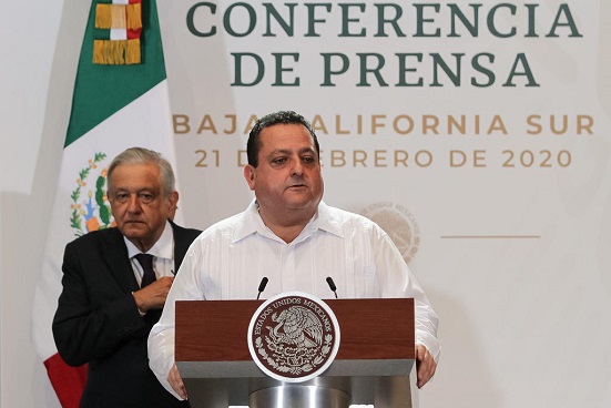 Durante la conferencia matutina del presidente Andrés Manuel López Obrador, esta vez en el auditorio de la Base Aeronaval de La Paz, el mandatario estatal expuso los índices delictivos que se registran en la entidad.
