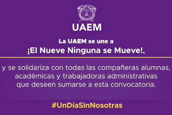 La UAEM informó que se solidarizará con las alumnas, académicas y trabajadoras administrativas que deseen sumarse a dicha convocatoria.