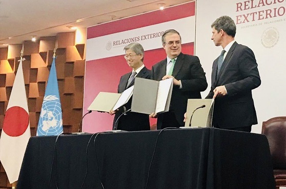 El Secretario de Relaciones Exteriores (SRE), el Embajador de Japón y el Jefe para las Migraciones en México de la Organización Internacional para las Migraciones (OIM) firmaron un convenio de cooperación para el Mejoramiento de la Atención Migratoria en la Frontera Sur.