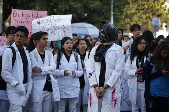 Gritan consignas de justicia y traen pancartas con preguntas como: “¿Nosotros procuramos tu vida, quién por la nuestra?, ¿Por qué nos asesinan, si somos el futuro de América Latina?, ¿Cómo le explico a mi mamá que quizá hoy ya no regrese?”