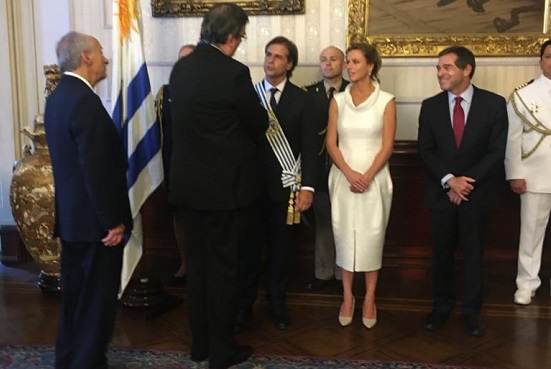 En representación del presidente Andrés Manuel López Obrador y del Gobierno de México, el secretario de Relaciones Exteriores, Marcelo Ebrard Casaubon, encabezó la delegación mexicana que asistió este domingo 1 de marzo a la ceremonia de Transmisión del Mando Presidencial, en la cual fue investido el presidente Luis Lacalle Pou.