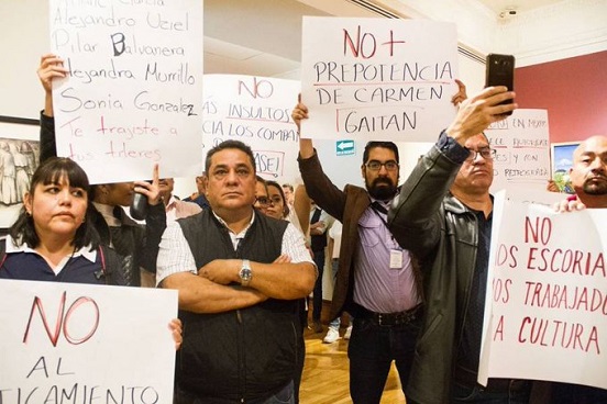 Trabajadores sindicalizados del Instituto Nacional de Bellas Artes y Literatura (INBA), tomaron las instalaciones para exigir el pago de sus prestaciones del año pasado.