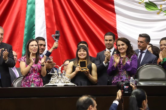 En Sesión Solemne en el Palacio Legislativo de San Lázaro, el pleno rindió un homenaje a la atleta, quien agradeció el apoyo al deporte, el reconocimiento a la gente con talento y solicitó que se busque la equidad de género en todas las disciplinas.