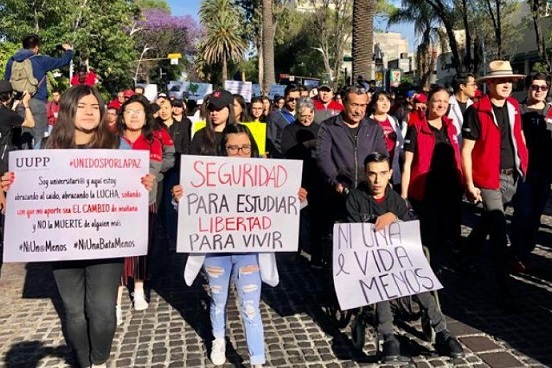 En redes sociales se ve cómo avanzan los contingentes de miles de estudiantes pertenecientes a aproximadamente 20 universidades, tanto públicas como privadas, que se sumaron en apoyo a la UPAEP y la BUAP para exigir al gobernador Miguel Barbosa Huerta mayor seguridad y el esclarecimiento del caso.