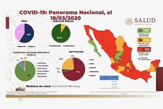 Hasta este miércoles, México presenta una total de 118 casos confirmados del nuevo coronavirus Covid-19, 25 nuevos en las últimas 24 horas. Tres personas se reportan graves, informaron autoridades de la Secretaría de Salud.