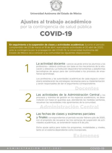 Dicha medida fue tomada luego de que la Universidad Autónoma del Estado de México decidiera suspender sus actividades del 20 de marzo hasta el 20 de abril.