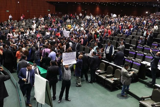A su vez, el diputado petista Gerardo Fernández Noroña llamó al diálogo y a crear una comisión, pero ante la negativa lamentó la actitud de los trabajadores y los acusó que en su falta de responsabilidad al trabajo legislativo busquen reventar la sesión.