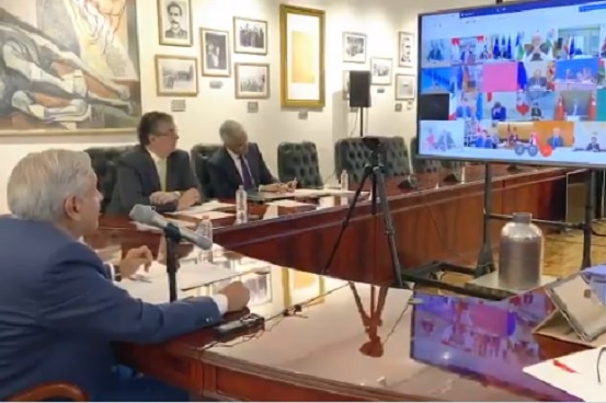 En su cuenta de Twitter, el mandatario se ve acompañado por el titular de la Secretaría de Relaciones Exteriores (SRE) Marcelo Ebrard, el subsecretario de la misma dependencia Julián Ventura, del secretario de Hacienda y Crédito Público, Arturo Herrera, y del subsecretario de Salud, Hugo López-Gatell.
