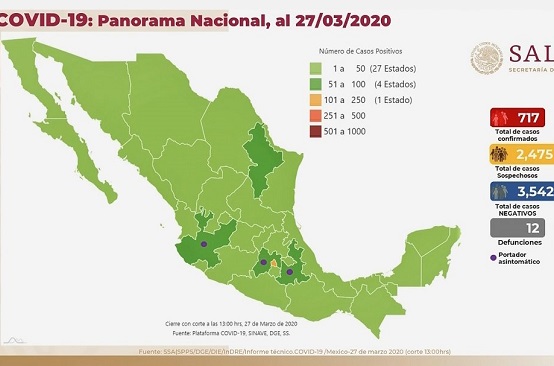 El director de información epidemiológica de la Secretaría de Salud, Christian Zaragoza Jiménez, confirmó este viernes cuatro defunciones por COVID-19 en México, con lo que la cifra se eleva a 12.