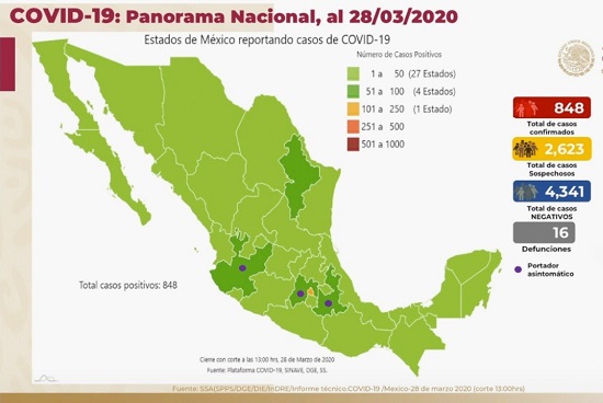El director general de epidemiología, José Luis Alomía Zegarra, informó que la cifra de muertes por COVID-19 en México se elevó a 16, tras confirmar cuatro nuevos decesos este sábado.