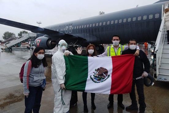Aunado al mensaje, Ebrard Casaubon compartió una imagen de algunos de los connacionales, portando una bandera mexicana, a punto de abordar una de las aeronaves.