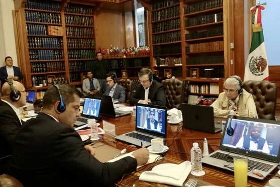 La Secretaria de Gobernación, Olga Sánchez Cordero, y el canciller Marcelo Ebrard encabezaron la segunda reunión con gobernadores del país para homologar los esfuerzos de atención a la emergencia sanitaria por la pandemia del COVID-19.