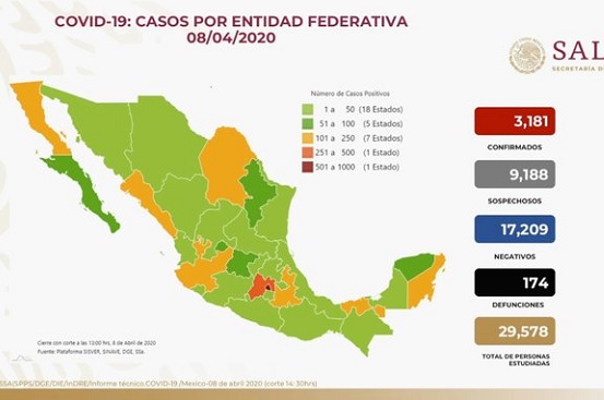 El director general de epidemiología, José Luis Alomía Zegarra, confirmó que hasta este miércoles se han reportado tres mil 181 casos de COVID-19 y 174 defunciones en el país.