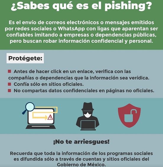 La Secretaría de Bienestar del Gobierno de México advirtió a la población de fraudes como el pishing, al imitar a empresas o dependencias oficiales para robar datos personales.