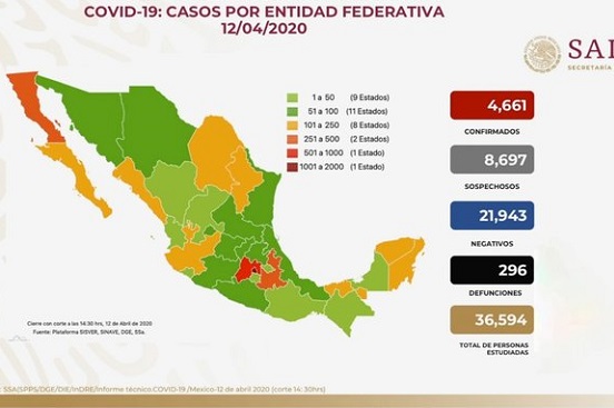 En las últimas 24 horas se han diagnosticado a 442 personas con el nuevo coronavirus COVID-19, con lo cual suman hasta este domingo cuatro mil 661 casos, además de 296 muertes, informó el titular de la Dirección General de Epidemiología, José Luis Alomía Zegarra.