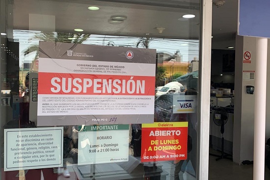 Como parte de estas acciones, representantes de la Coordinación General de Protección Civil del Estado de México y del municipio de Nezahualcóyotl, a través de recorridos de inspección por diversas colonias donde se tiene alta concentración de comercios, en trabajo conjunto con el Instituto de Verificación Administrativa del Estado de México (Inveamex), la Comisión para la Protección contra Riesgos Sanitarios (Coprisem), la Secretaría de la Defensa Nacional (Sedena) y Protección Civil municipal, analizaron y supervisaron aproximadamente 380 locales fijos que no corresponden a insumos de primera necesidad para que cerraran y suspendieran actividades.
