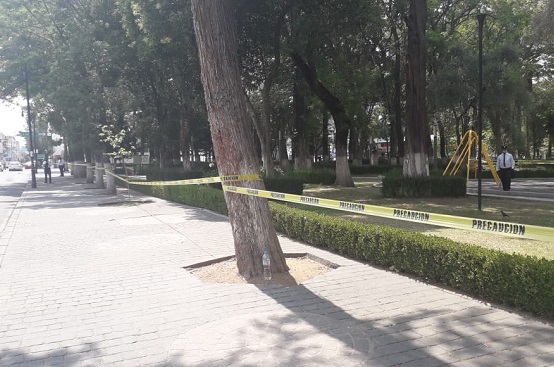 En la periferia del parque se colocaron cintas e información para evitar el paso de los transeúntes, se realizará, al igual que en Los Portales, un operativo permanente con personal de la Coordinación Municipal de Protección Civil y Bomberos, de la Dirección General de Seguridad Pública y cadetes.