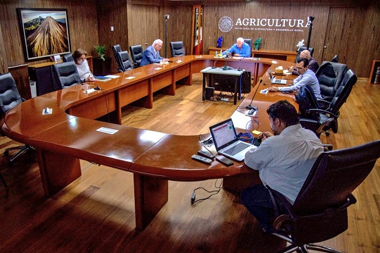 El secretario de Agricultura y Desarrollo Rural, Víctor Villalobos Arámbula, acordó con representantes del sector agroalimentario nacional fortalecer las medidas para garantizar la producción y abasto de alimentos durante la Fase 3 de contingencia sanitaria y perfilaron un plan de recuperación postpandemia.