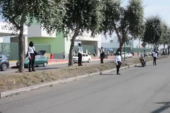 Declarada la Fase III de la contingencia por COVID-19, el gobierno municipal de Toluca refuerza la seguridad en 18 hospitales de la capital con apoyo de elementos de la Dirección General de Seguridad Pública, Orden Vial y cadetes, a fin de garantizar los servicios de salud, durante la emergencia sanitaria.