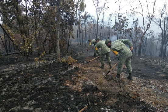 «Estas deflagraciones han consumido más de 800 hectáreas de pastizales, vegetación, maleza y selva baja, ocasionando diversos daños en la flora, por lo que el personal militar se encuentra trabajando de manera coordinada con Protección Civil, la Comisión Nacional Forestal, la Secretaría del Medio ambiente y autoridades estatales, con el objeto de lograr el restablecimiento de la normalidad en las zonas afectadas», puntualizó la institución militar.