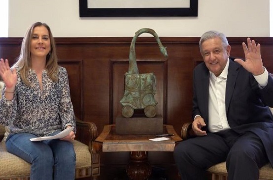 Desde Palacio Nacional, Gutiérrez Müller leyó el cuento “La Camisa del Hombre Feliz”, texto que -reconoció López Obrador- es uno de sus favoritos.