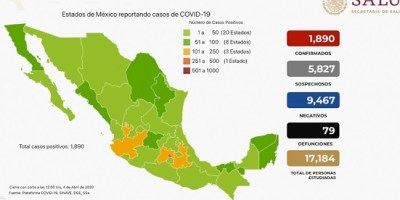 Confirman mil 890 casos de COVID-19 y 79 muertes en México