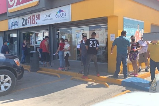 De manera simultanea, al menos cinco establecimientos autorizados para vender bebidas embriagantes, presenciaron filas de más de una hora para, donde no se acataron al 100 por ciento las medidas de sana distancia y donde hasta bebes permanecían en la fila a 40 grados centígrados.