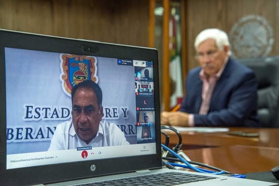 En videoconferencia, el funcionario federal y el gobernador de la entidad, Héctor Astudillo Flores, evaluaron los avances del Programa de Fertilizantes.