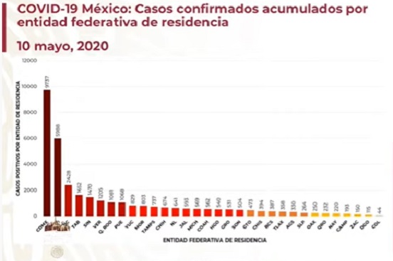 En segundo lugar se mantiene el Estado de México con 5 mil 988 casos positivos, 6 mil 828 sospechosos, 7 mil 160 negativos y 340 fallecimientos.