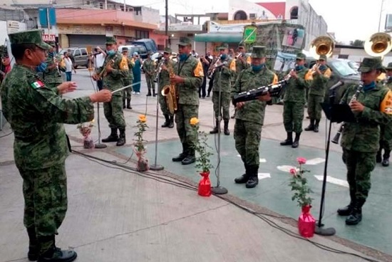 La banda de música de la IV Región Militar llevó serenata a diferentes hospitales del Instituto de Seguridad y Servicios Sociales de los Trabajadores del Estado (Issste) en el área metropolitana de Monterrey.