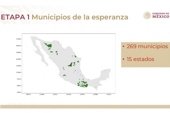 «En la etapa uno, estos municipios que hemos detectado que no tienen contagio y no tienen vecindad con contagio les hemos denominado los Municipios de la Esperanza, en el corte de hoy son 269 en 15 estados. En los próximos días habrá una colaboración institucional y entre gobiernos para la implementación de cercos sanitarios, para proteger a estos municipios».
