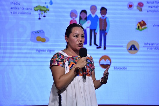 En rueda de prensa, María Luisa Albores precisó que bienestar está catalogado en el presente gobierno como el dotar a la población de servicios, trabajo, infraestructura, caminos, educación, un ingreso digno, una alimentación saludable, carreteras, luz, agua, drenaje, servicios bancarios, entre otros, atendidos a partir de 25 programas prioritarios.