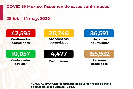 Hasta este jueves, el país suma 42 mil 595 casos confirmados acumulados de COVID-19, de los cuales 10 mil 057 se encuentran activos, y cuatro mil 477 defunciones, informó el titular de la Dirección General de Epidemiología, José Luis Alomía Zegarra.