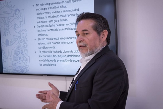 En videoconferencia, el funcionario explicó que la conclusión del actual ciclo escolar se extenderá hasta el próximo 17 de julio, mientras tanto se continuará con el programa de clases a distancia.