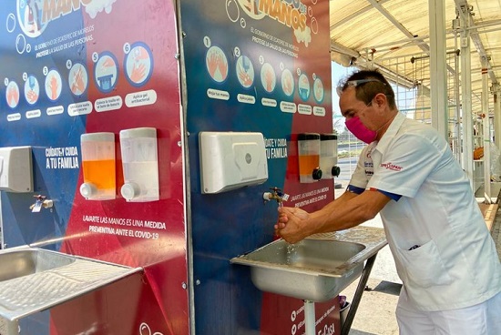 Agregó que cada módulo cuenta con tanque de agua de 450 litros, dos lavabos, jabón, gel antibacterial y toallas de papel.