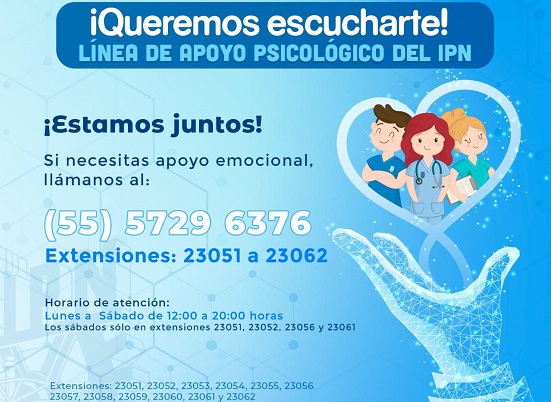 A partir de hoy, el Instituto Politécnico Nacional (IPN) pone a disposición de su comunidad, incluyendo a quienes están dentro del sector salud, la Línea de Apoyo Psicológico para hacer frente a la emergencia sanitaria por COVID-19.