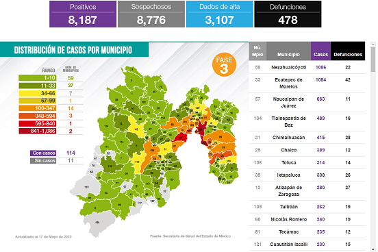 Edoméx suma 8,187 casos positivos a Covid-19 y 478 defunciones