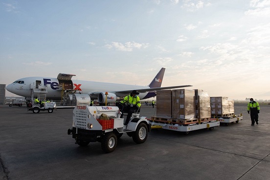 Alrededor de las 07:00 horas, arribó al Aeropuerto Internacional de Toluca (AIT), en el Estado de México, el avión de FedEx con equipo médico de la empresa estadunidense Hamilton Medican.
