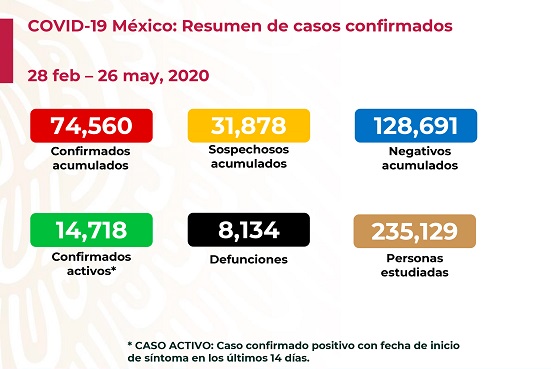 En rueda de prensa detalló que también se han reportado 31 mil 878 casos sospechosos acumulados y 128 mil 691 negativos. Desde el inicio de la epidemia se han estudiado a 235 mil 129 personas.