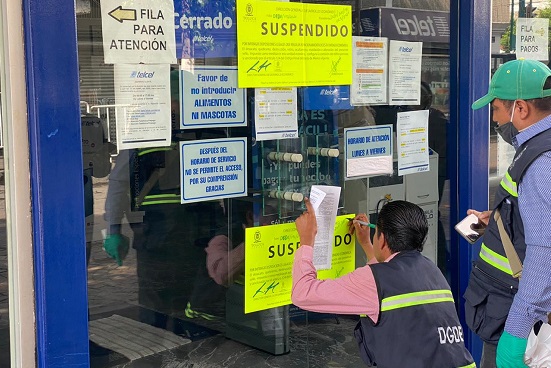 El gobierno municipal de Toluca suspendió la actividad comercial en el Centro de Atención al Cliente Telcel y la sucursal Banamex Centro Histórico, por no contar con la documentación requerida, especificada en el Bando Municipal de la capital.