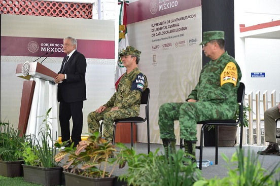 Reiteró el respaldo de las Fuerzas Armadas. Comentó que una vez en una conversación telefónica, el presidente de Estados Unidos, Donald Trump, le preguntó “‘¿cómo le está haciendo para enfrentar la pandemia?’ Le dije que lo más importante era lo preventivo, ayudar a la gente quedándose en casa, las medidas de sana distancia, hacerle caso a los especialistas y nos estamos apoyando en las Fuerza Armadas.